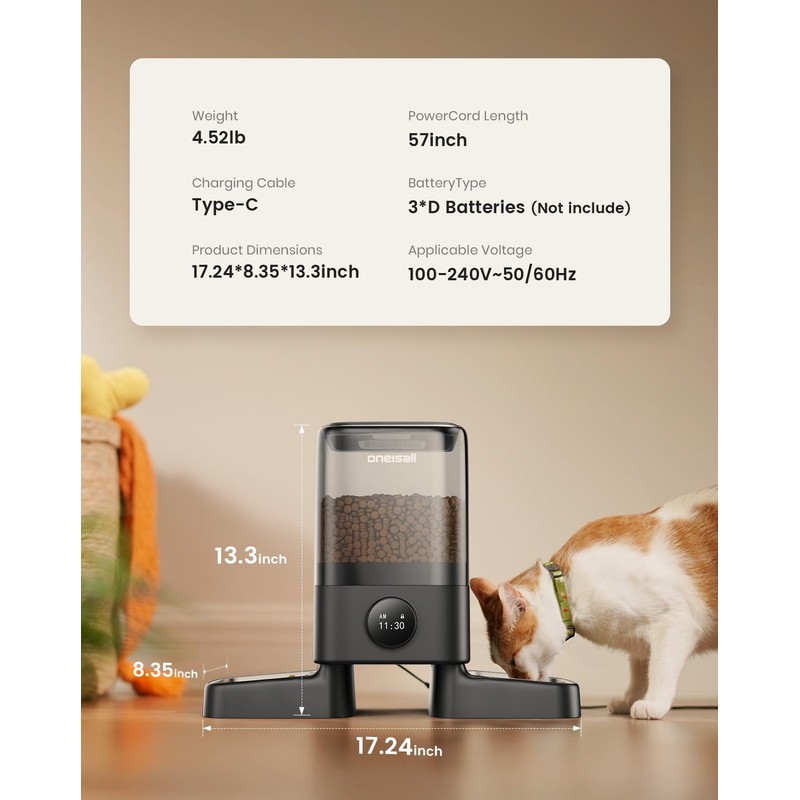 - Dual power supply: Use 3 x D batteries for backup to avoid power outages, ensuring your cat's feeding isn't interrupted.