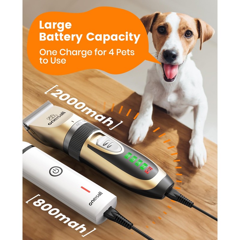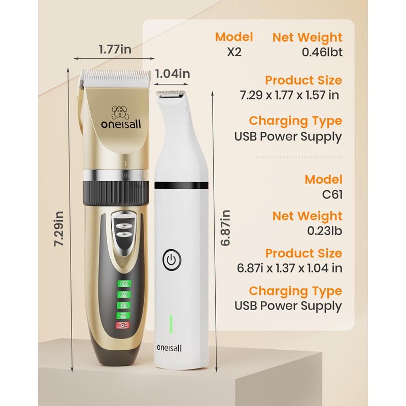 oneisall Dog Clippers and Paw Trimmer Kit 2 in 1 Low Noise Cordless Dog Clippers for Grooming Pet Hair Trimmers for Small and Large Dogs Cats Animals