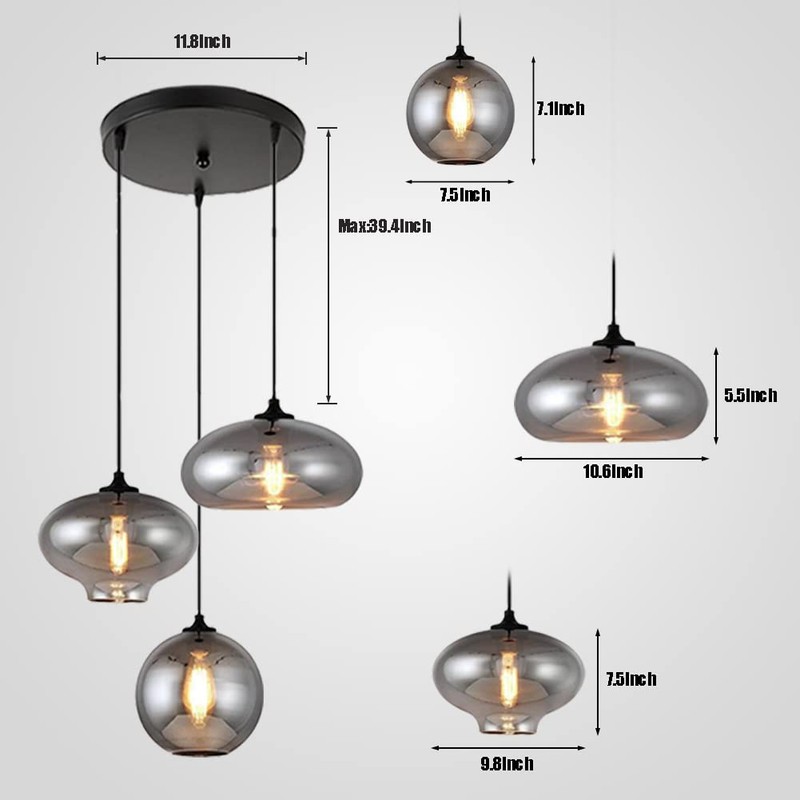 ONELLH Cluster Pendant Lights 3 Lights Vintage Chandeliers Retro Flush Mount Ceiling Light Smoky Gray Glass Pendant Light Fixtures for Kitchen Island Dining Room Foyer Cafe Bar Restaurant
