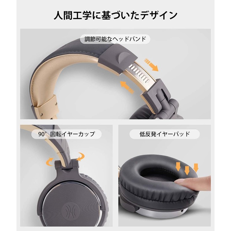 OneOdio Monitor Headphones, DJ Headphones, Single Ear Monitoring, Suitable for Studio Recording, Instrument Practice, Mixing, TV Watching, Movie Watching, etc. Gray*Gold