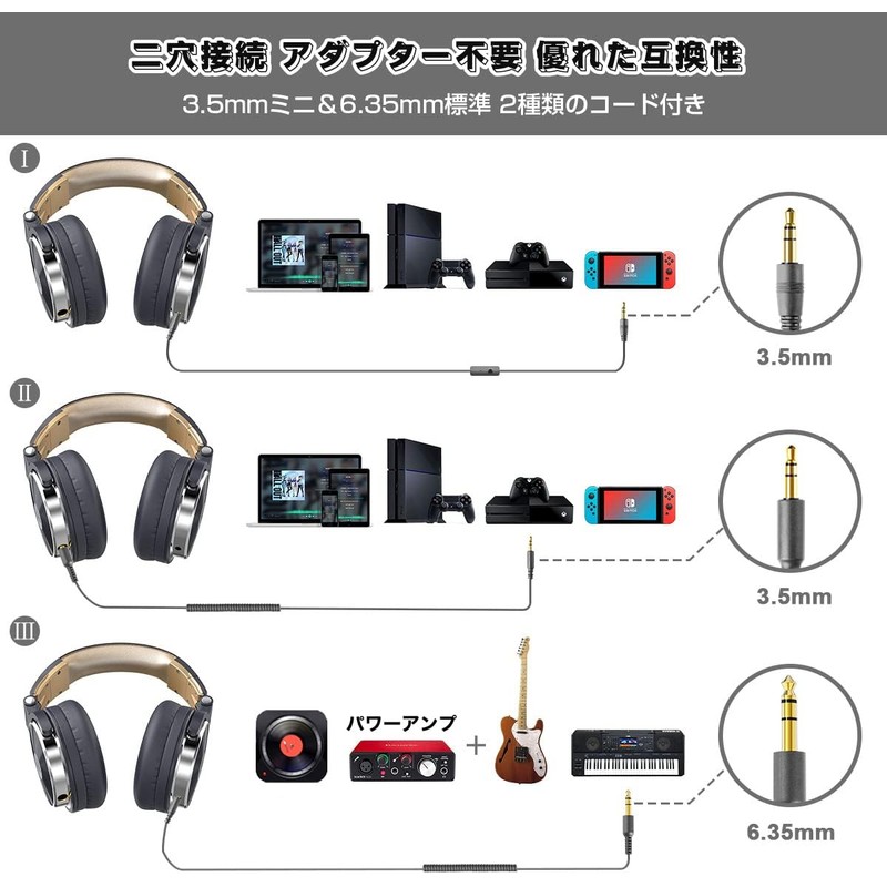 - 🎧【Instrument Practice/Music Sharing】With 6.35mm and 3.5mm jacks on both sides of the headphones, when connected to an instrument, the power amplifier can maximize the function of the headphones. Two types of cables are included to suit the scene, allowing multiple people to enjoy stereo music from one device at the same time.