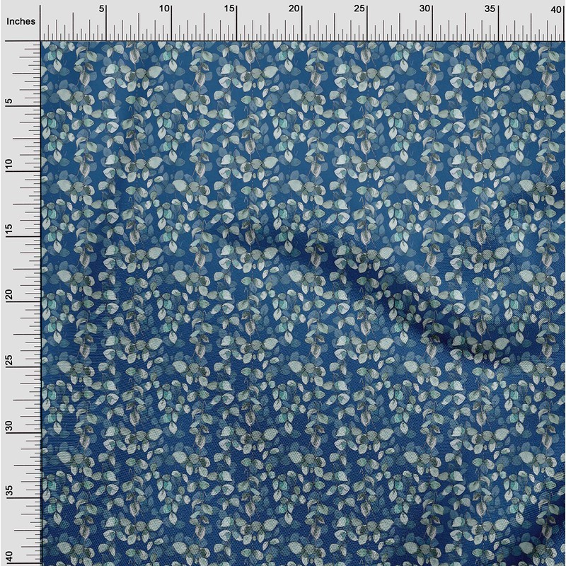 oneOone Cotton Jersey Blue Fabric Leaves Watercolor Sewing Craft Projects Fabric Prints by Meter 58 Inch Wide