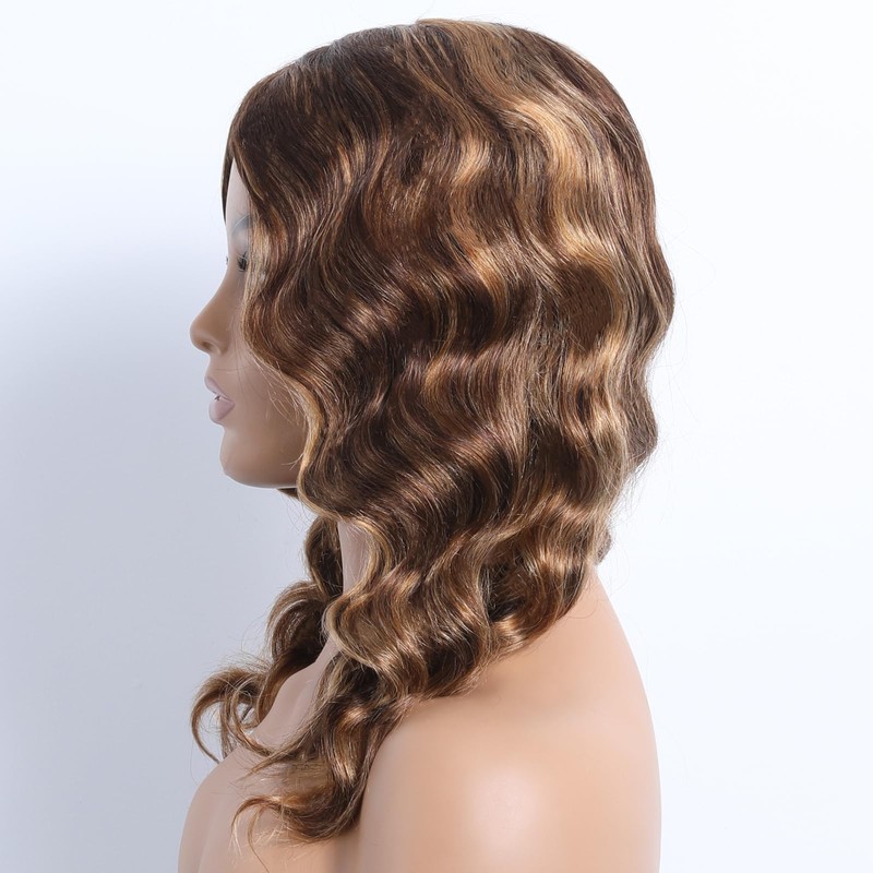 OnePart glueless human hair wig 16 inch loose deep wave body wave ocean wave wavy wigs for black women side part P4/27