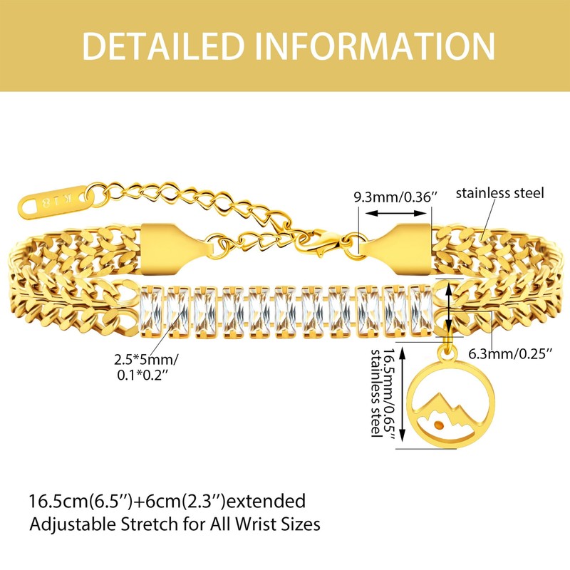 2. Material: aus hochwertigem Edelstahl gefertigt, ist dieses Armband so konzipiert, dass es dem täglichen Verschleiß standhält und gleichzeitig seinen Glanz beibehält. Der Zusatz von rechteckigen AAA+ Zirkonia verleiht einen Hauch von Eleganz und ist somit ein atemberaubendes Stück für jede Schmucksammlung.