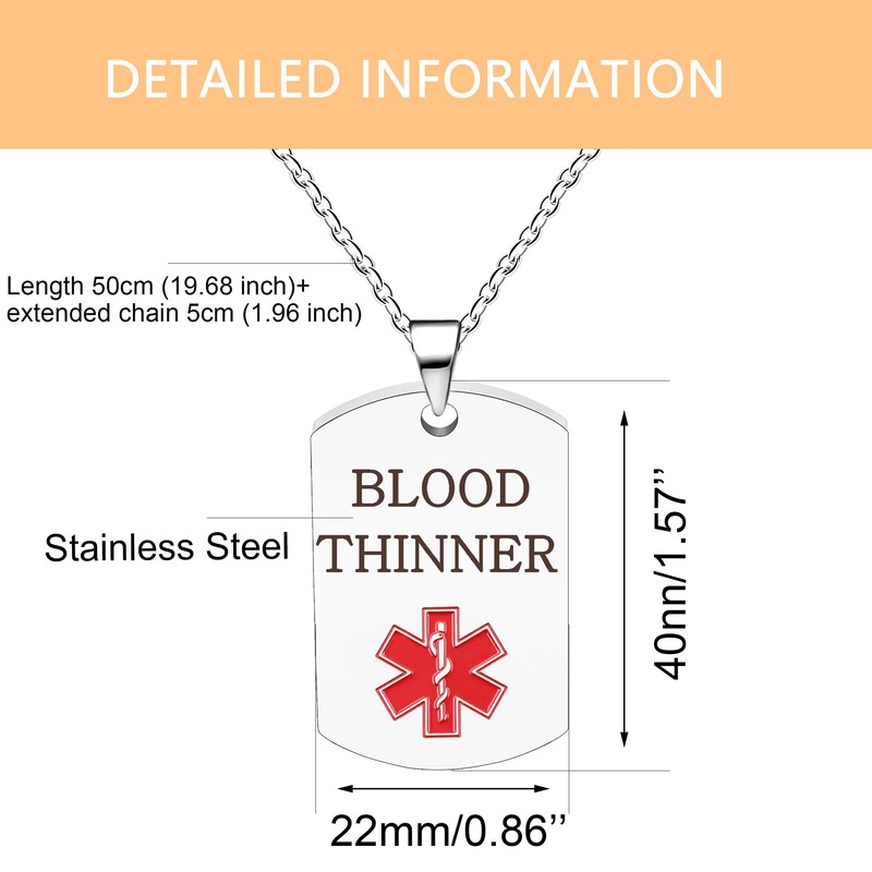 Oneress Platin-Beschichtete Blutverdünner Halskette, Notfall-Tag Für Männer &...