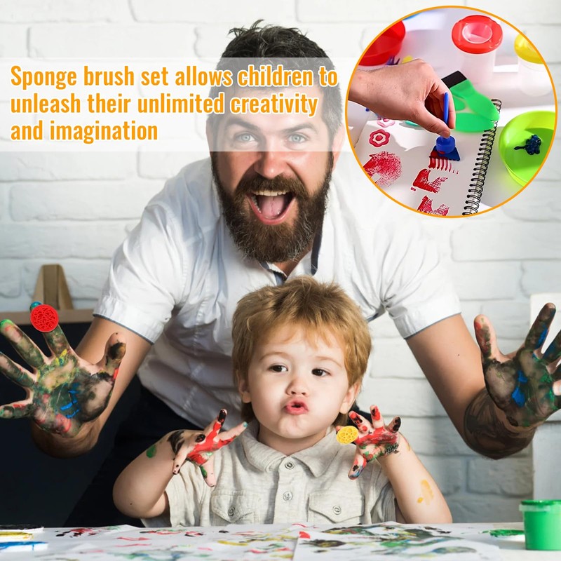 - Paintbrush set reusable: our children's brush sponge set stimulates your child's imagination and creativity. All artificial sponge brushes are washable, reusable and can be washed directly with water to dry and clean up.