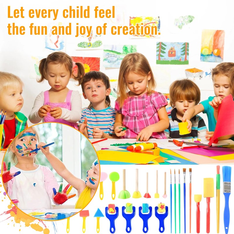 Oneroomone Pack of 33 Kids Paint Brushes Sponge Kits, Children's Painting Tools Set, Watercolours Children from 2, Painting Set for DIY for Early Childhood, Sponge Painting Brush Crafts for Children