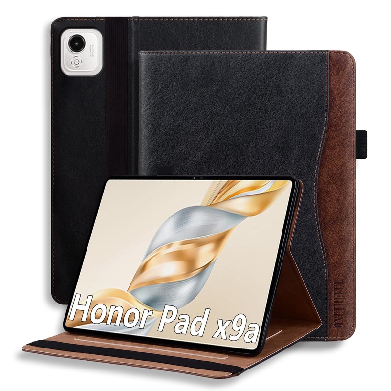 ONETHEFUL Tablet Case for Honor Pad X9a 11.5" 2025 - Protective PU Leather with Multi-Angle Adjustable Stand, 2 Card Slots, Pen Holder | Black
