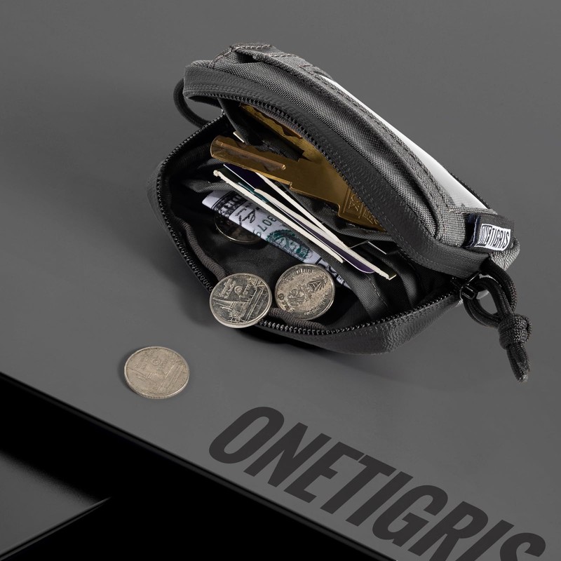 ONETIGRIS Cassette Card Case, Coin Case, Waterproof Zipper, Nylon, gray