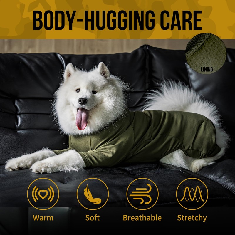 - [Comfort Core Dogwear] Versatile onesie doubles as daily warmth, cozy pajamas, or thermal base layer. Its snug fit soothes anxiety, while full-body, long-sleeve coverage adds extra heat under coats. Ideal for skin issues—prevents licking of hot spots, allergies, and infections. Soft, durable, and easy to clean: the ultimate comfort for your furry friend!