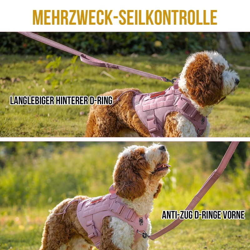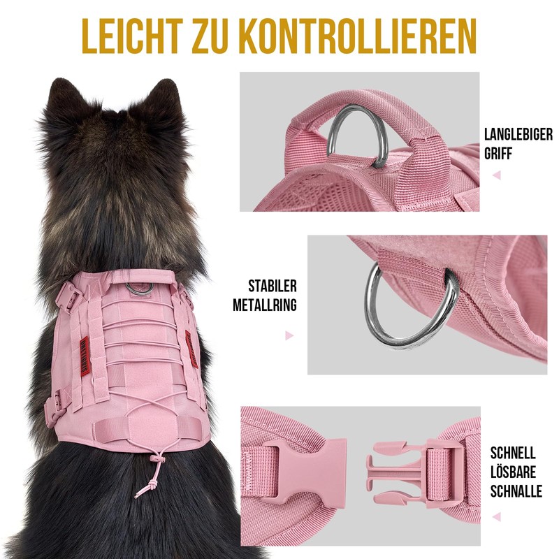 - Easy to put on and take off tactical dog harness: adjustable dog harness with a top handle for traffic control, 4 quick release buckles for easy on and off while maintaining safety; and a leash attachment point on the front