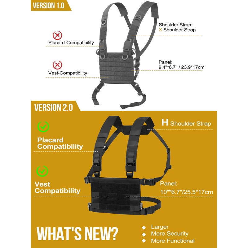 - OneTigris Modular Chest Panel: 1000D Nylon construction that's tough, dirt/water/abrasion resistant