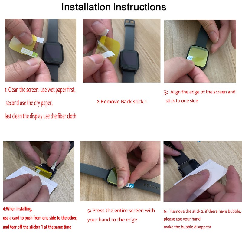 - Package contents: the pack contains 6 screen protectors for smart watch, 3 wet cleaning cloths, 1 piece fabric.