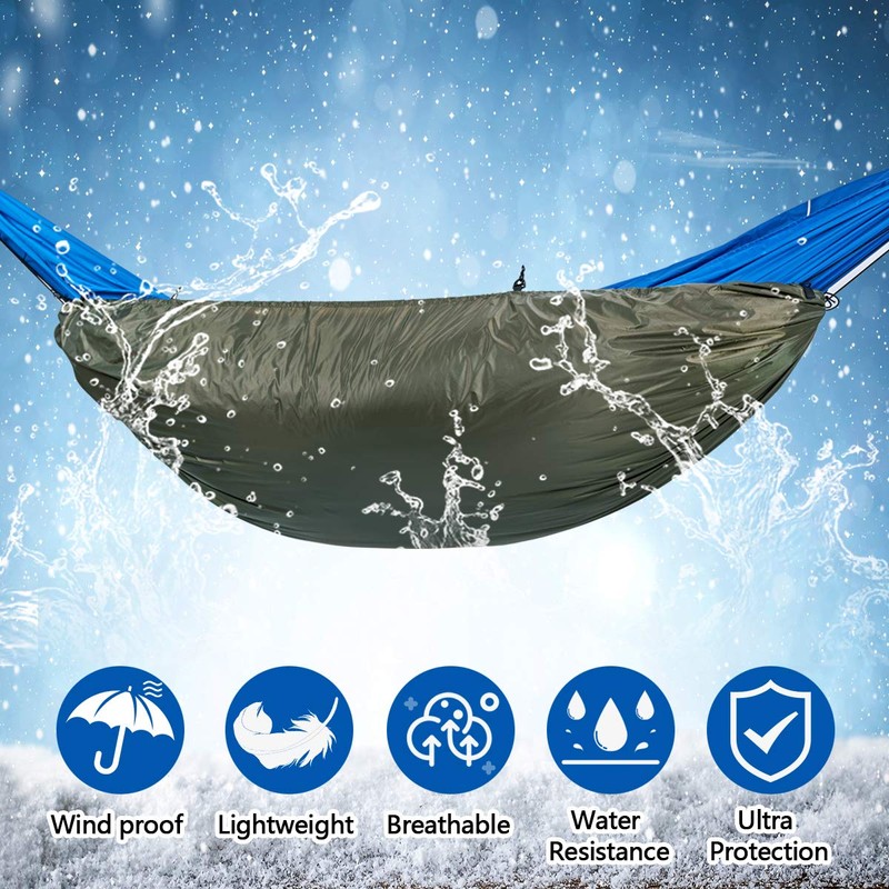 - HAMMOCK DOUBLE SKIN. If you love to camp in the open air, you know what it’s like when you’re not properly covered. This underquilt protector acts as a double skin to help block wind on your back during summer nights when you don’t use this as an underquilt.