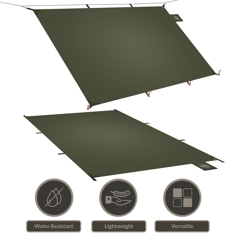 - Multipurpose and Versatile. This backpacking gear also makes an excellent rain tarp, survival shelter, picnic or beach mat, tent footprint, camping tarp, hammock rain fly, sunshade, beach mat, picnic blanket, ground mat or a rain shelter when backcountry camping.