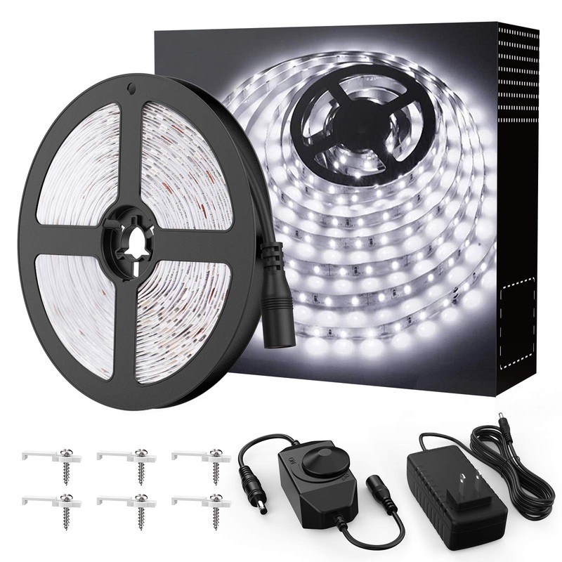 - High Flexibility: Strip length 16.4ft/5 m, this white LED strip light is flexible enough to be installed in many locations in your house. You can easily to bend the lights to the corner you wanted, such as under cabinet, mirrors, stairway, closets.