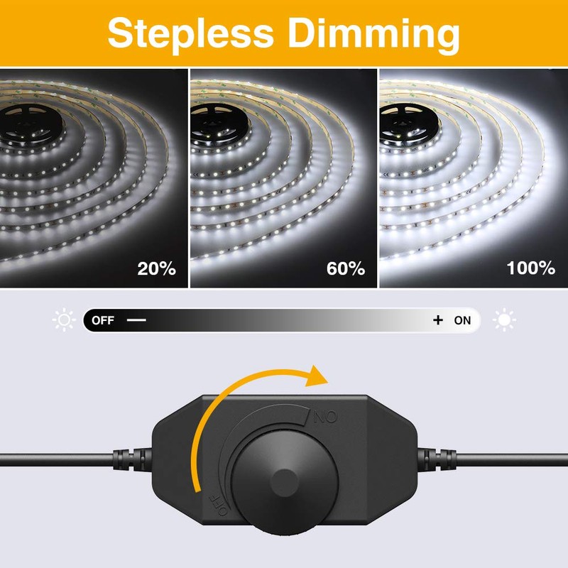 - Dimmable Strip Lighting: This LED tape light can be simply controlled by using the switch dimmer(included). You can easily dim or brighten your LED lights to your desired brightness level for various occasions.