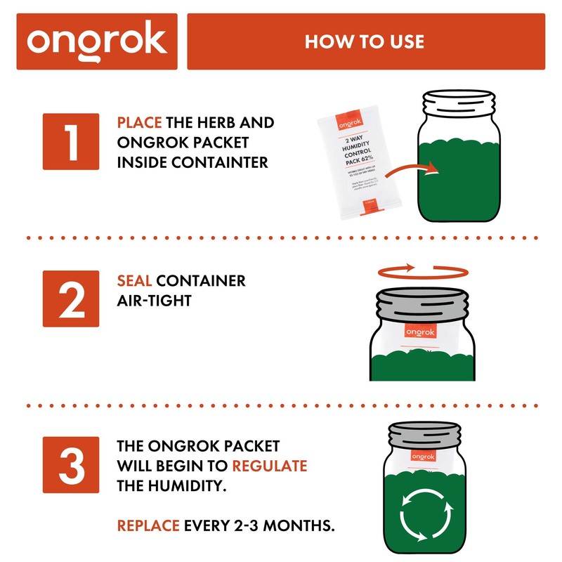 - Lab Tested for 62% RH | ONGROK's moisture control packs are made from eco-friendly plant fiber, so there is no chance of a stem puncturing the packet and leaking unwanted solution. Keep your product fresh with the help of these humidity regulator packets. A great, safe solution to rehydrating your material.