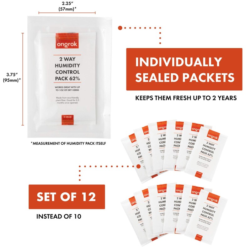 ONGROK 62% Humidity-Control Packs for Dry Herbs, Moisture Packs (8-Gram, 12-Pack)