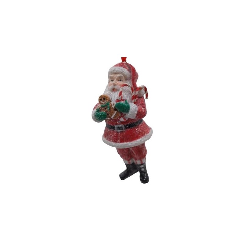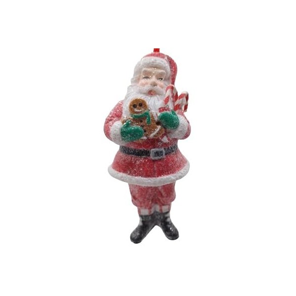 OnHoliday Frosted Candy Santa with Candy Cane and Gingerbread Man Cookie Hanging Christmas Tree Ornament
