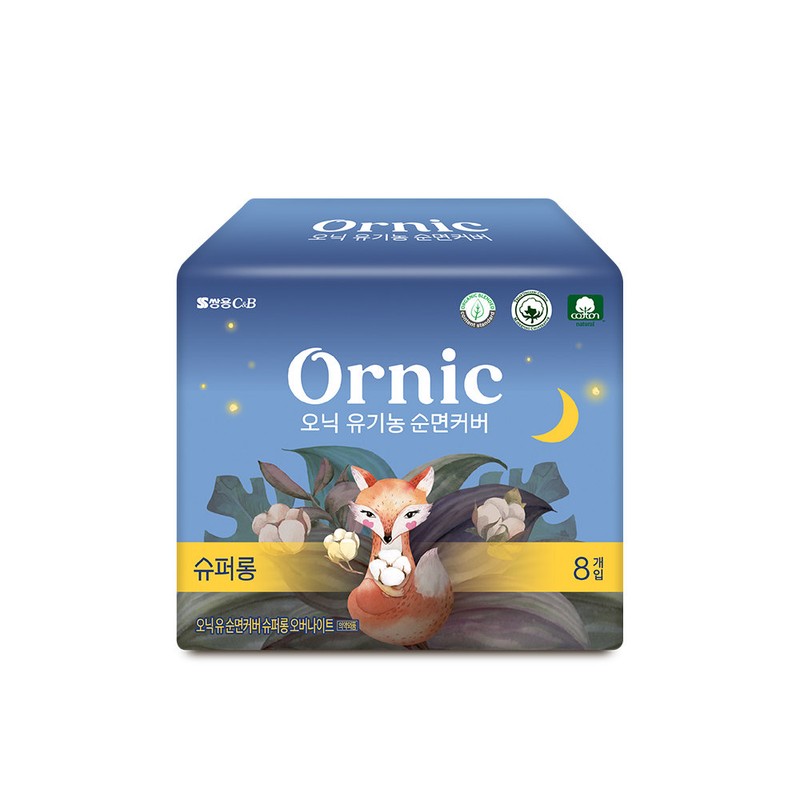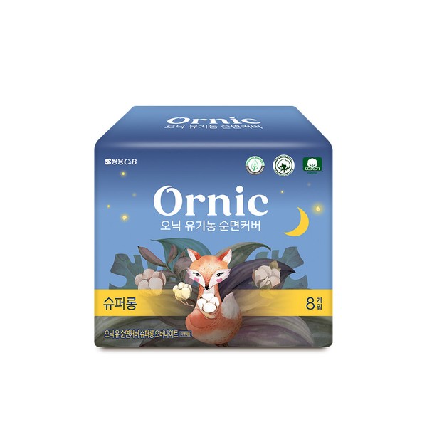 Onic organic cotton cover super long overnight 8p 1 pack / 오닉 유기농 순면커버 슈퍼롱 오버나이트 8p 1팩