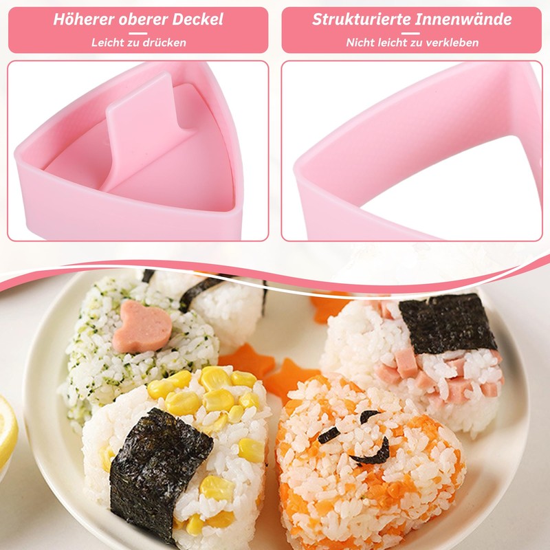 FOR SUSHI LOVERS AND HOME COOKS If you like to make sushi or onigiri at home, this Onigiri mould is the perfect tool. It helps you design your sushi creations quickly and accurately so you can impress your friends and family with culinary masterpieces. Whether you want to put together a sushi set for a party or simply enjoy a quick lunch, this mould makes life easier.