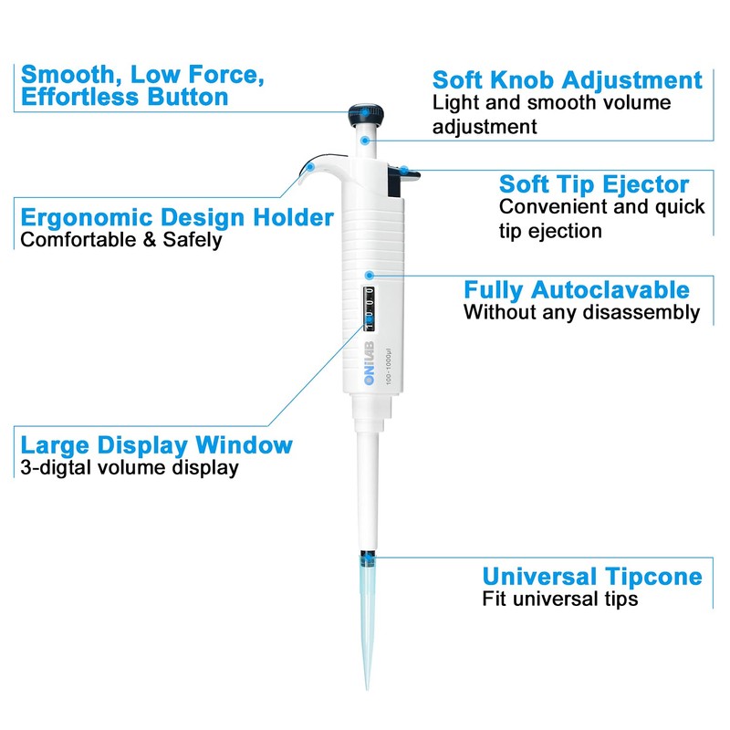 - Fully Autoclavable: ONiLAB pipettes are fully autoclavable at 121°C, 1 bar for 20 minutes without any disassembly; full instructions on autoclaving can be found in the included instructions for use