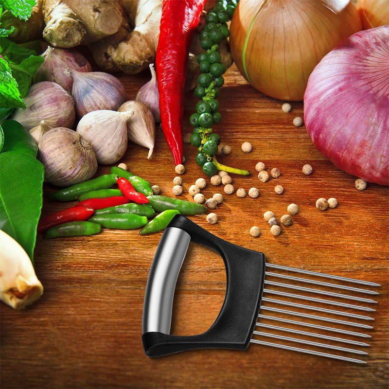Onion Slicer Holder Food Slice Assistant Onion Slicer Fork Food Slicing Helper Vegetable Chopping Tool for Potato Carrot Tomato Cucumber