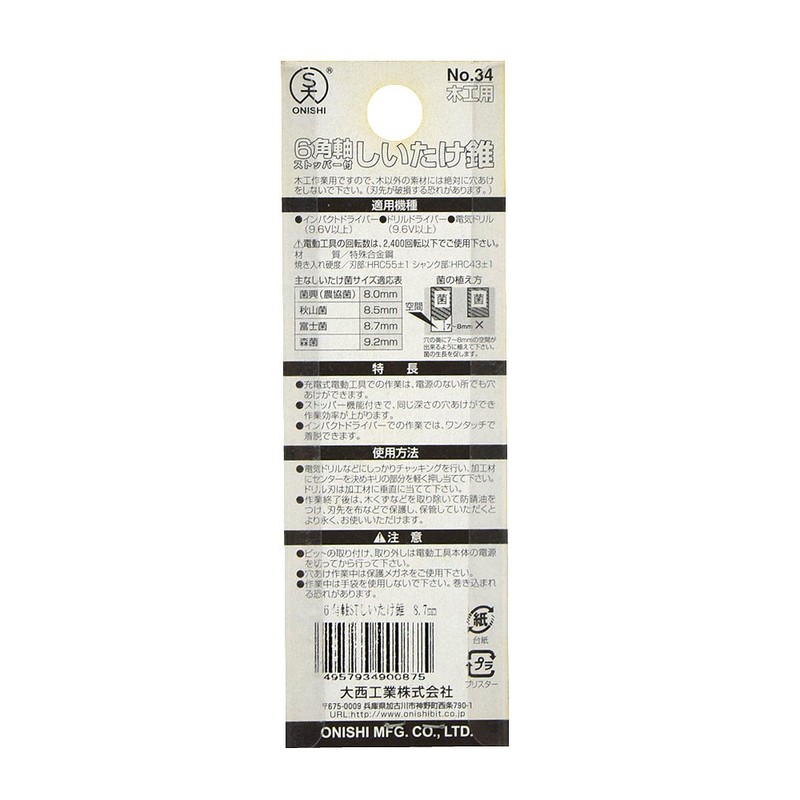 - For drilling shiitake cultivation (for koma)