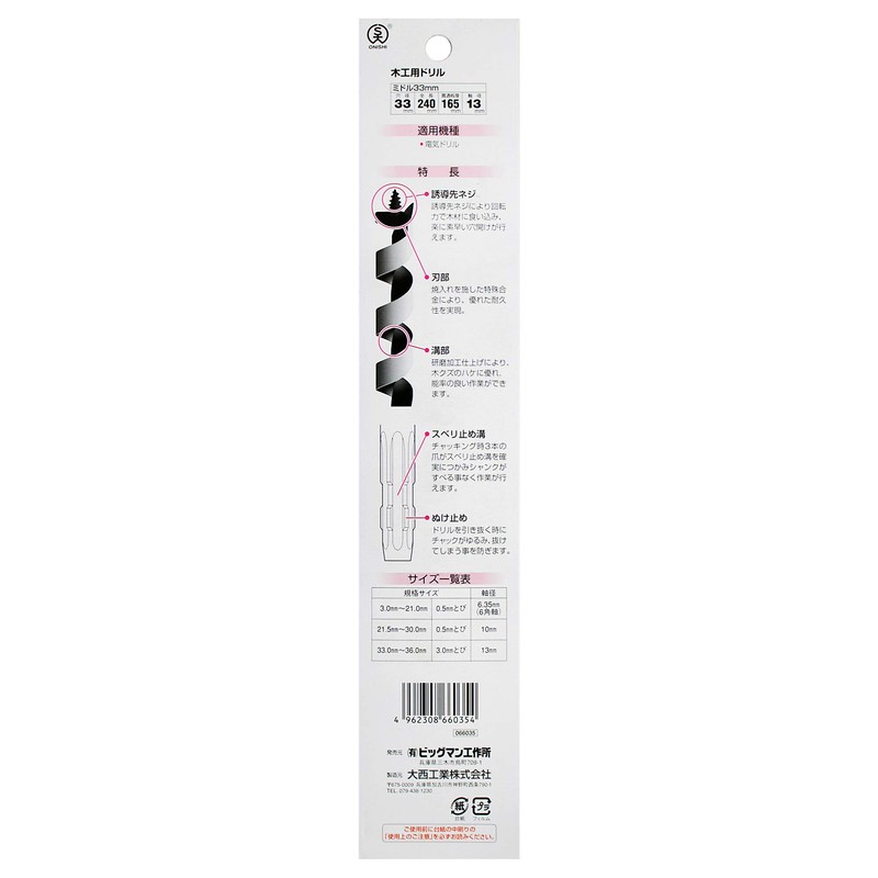 Onishi Kogyo S Large Woodworking Drill Middle 1.3 inches (33.0 mm)