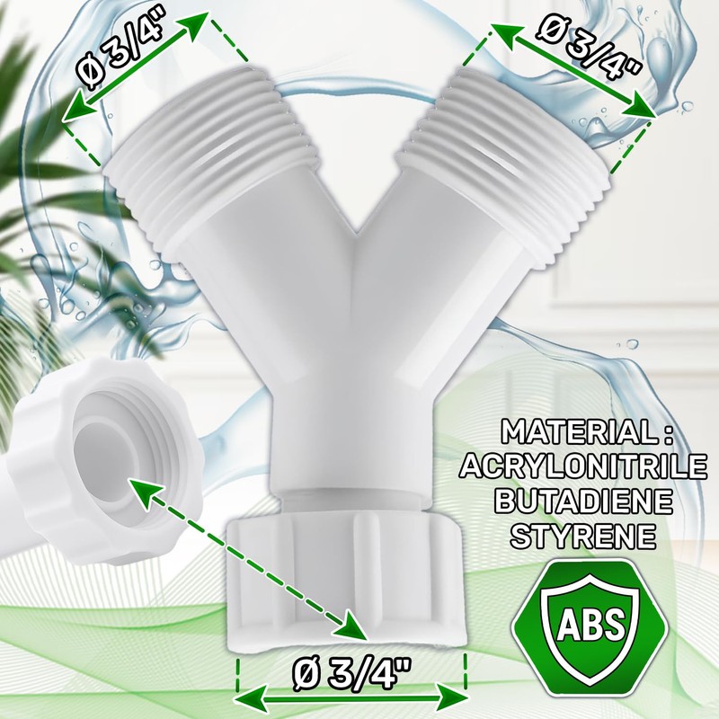 - Special feature: two inlets with a diameter of 3/4 inch thread diameter and an outlet with a diameter of 3/4 inch thread diameter. Material: ABS