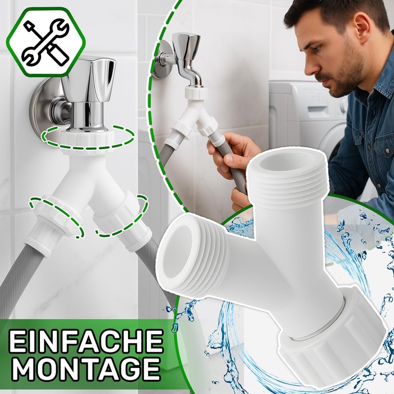 - The 2-way distributor water allows you to connect multiple devices such as washing machine, dishwasher or garden hoses to the same water pipe at the same time.