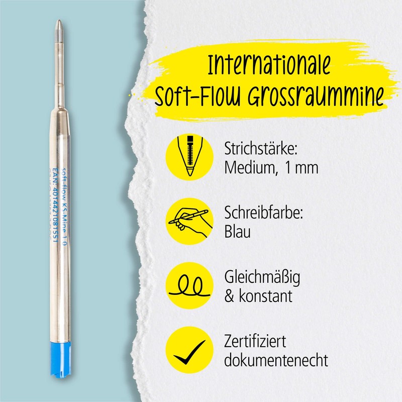 - Certified quality: Soft Flow is predestined to equip high-quality writing instruments and fulfil the wishes of demanding customers for a premium writing system. ISO 12757-2 DOC