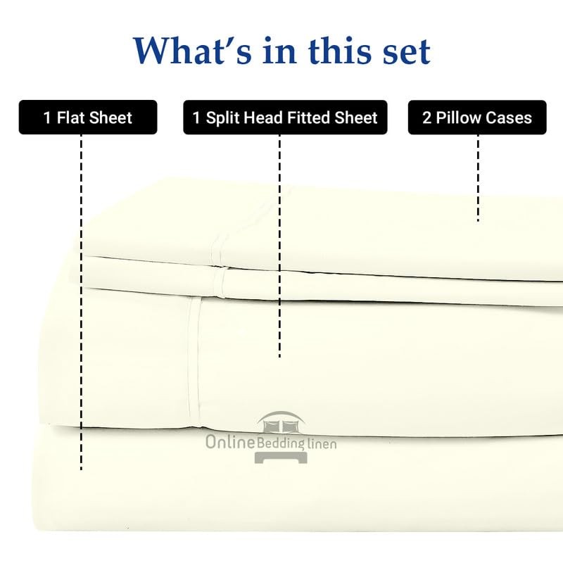 Online Bedding Linen Flex Top Queen Size Bed, 800TC - Egyptian Cotton 18" Deep Pocket - Split Top Queen Sheets for Sleep Number Bed (4 Pcs) Flex Head Queen 32" Top Split Sheet - Ivory