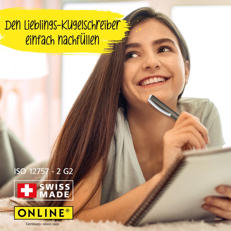 - For your favourite ballpoint pen: Simply use your favourite ballpoint pen with the practical ballpoint pens from Online. The international standard large-capacity refills fit in all standard large-capacity ballpoint pen models.
