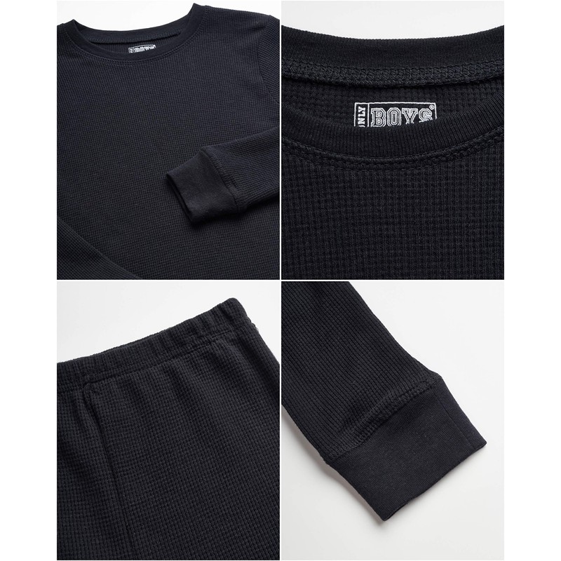 - WAFFLE KNIT PAJAMA SET: A complete colorful sleepwear set for boys that retains warmth to keep your little one snug and comfy; This thermal 2-piece underwear set will quickly become your son's favorite bedtime outfit; Buy several different sets and stretch out his collection with these extra warm outfits