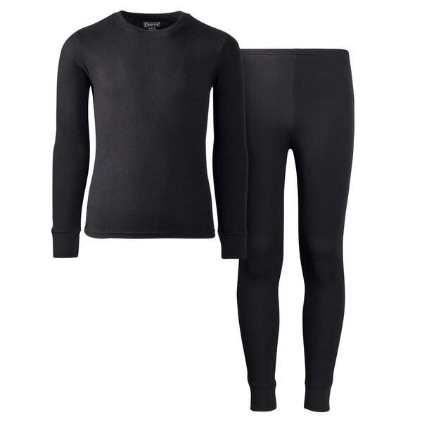 Only Boys’ Thermal Underwear Set – 2 Piece Waffle Knit Top and Long Johns (2T-16), Size 8/10, Black
