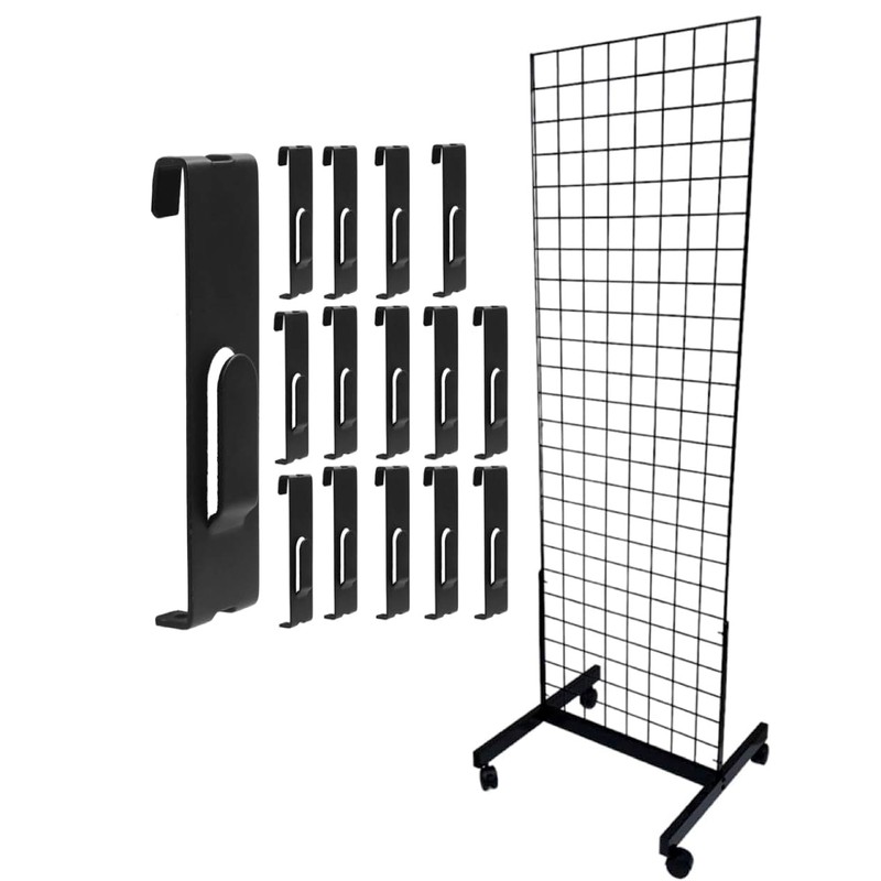 Only Hangers Black 2' x 6' Heavy Duty Commercial Grade Portable Gridwall Art Display Panel (KIT with Picture Hooks)
