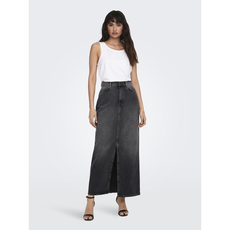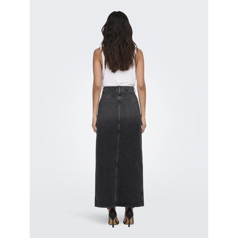 ONLY Maxi Denim Skirt mid Waist Skirt with Slit and Front Pockets, Colours:Black, Size:S