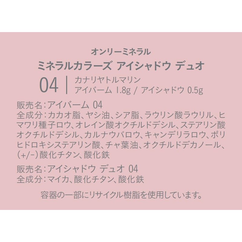 ONLY MINERALS Mineral Colors Eye Shadow Duo 04 Canary Tourmaline Moisturizing Balm Mineral Eye Shadow