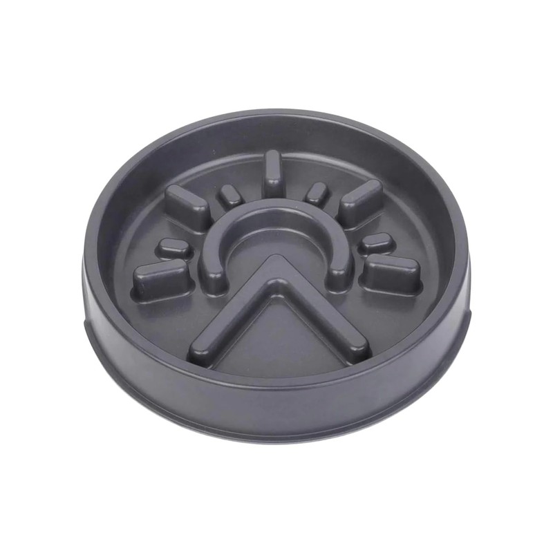 Designed for large breeds, this 10.5” diameter and 2” height dog puzzle bowl comfortably serves dogs weighing over 55 pounds. The sleek dark gray color complements any decor, adding elegance to your pet's dining area.