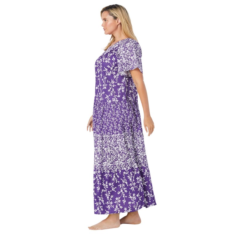 Only Necessities Women's Plus Size Long Tiered Print Lounger - 2X, Plum Burst Floral