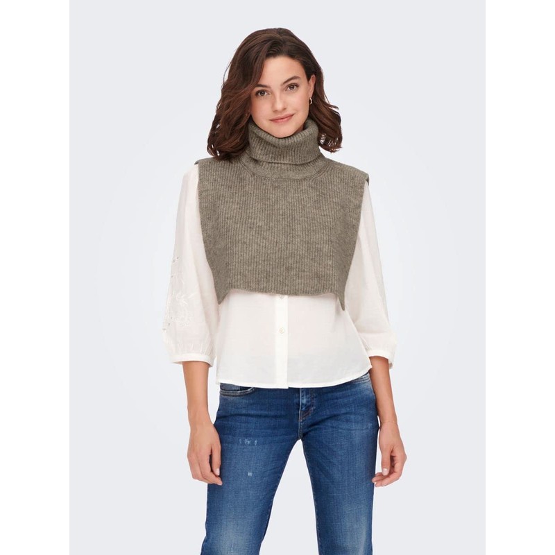 ONLY Women's Onllovisa Life Knit Collar Acc Sweater Vest, camel, Unit size