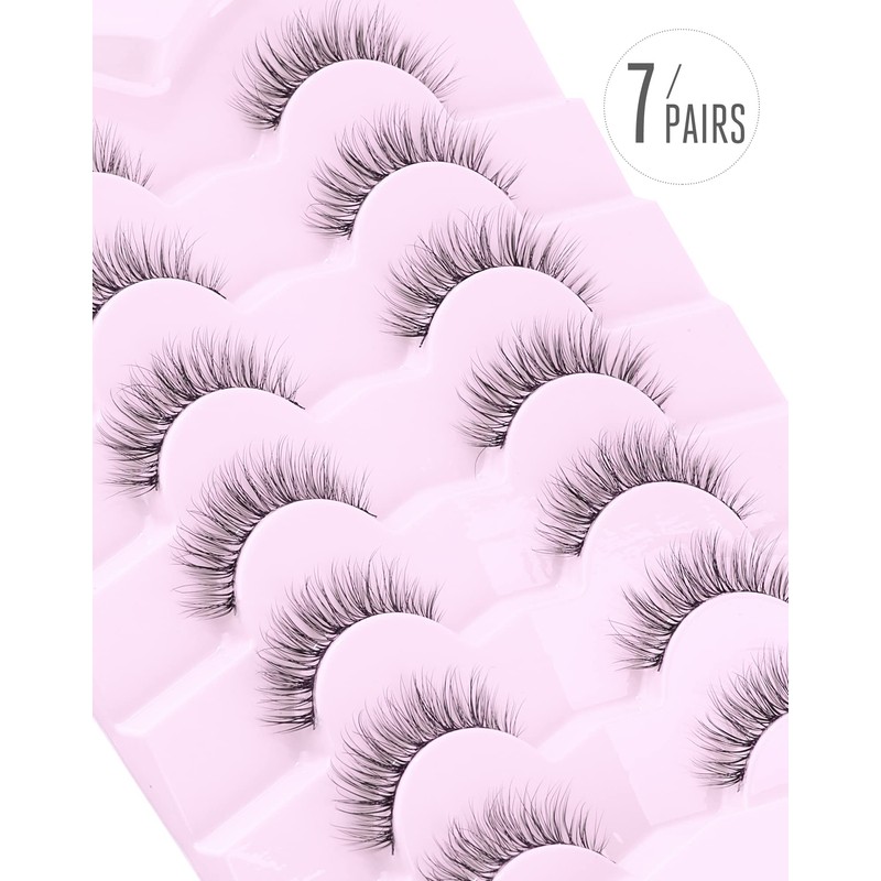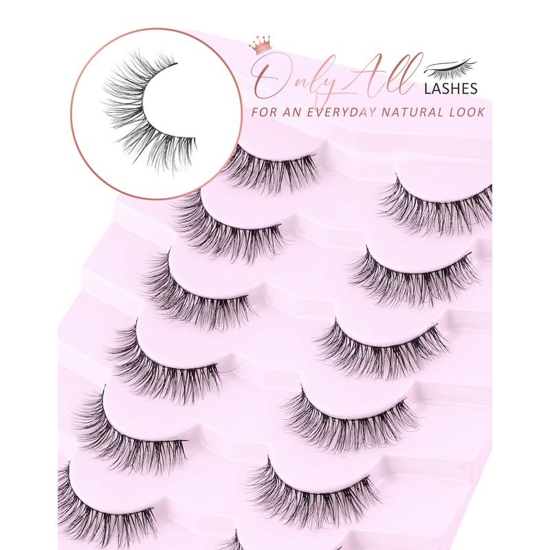 Onlyall Wispy Lashes Natural Look Short Eyelashes Lite Volume False Eyelashes Natural Lashes Soft False Eye Lashes Pack 7 Pairs D4
