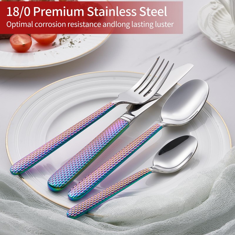 - 【DURABLE FLATWARE】: Constructed of high-quality 18/0 stainless steel, these knives, forks and spoons are rust and corrosion resistant for lasting use