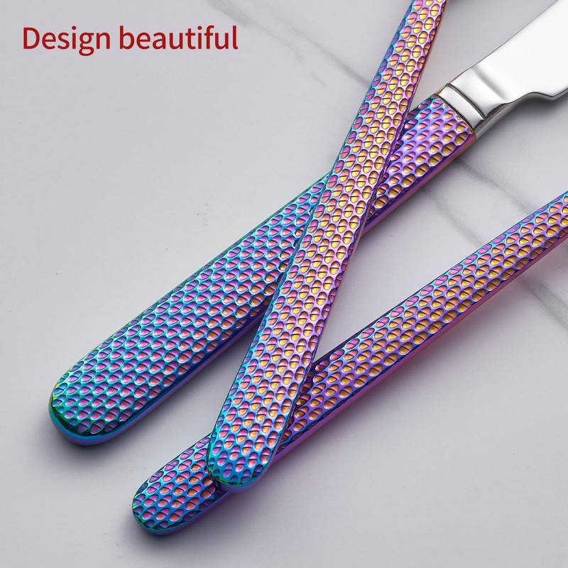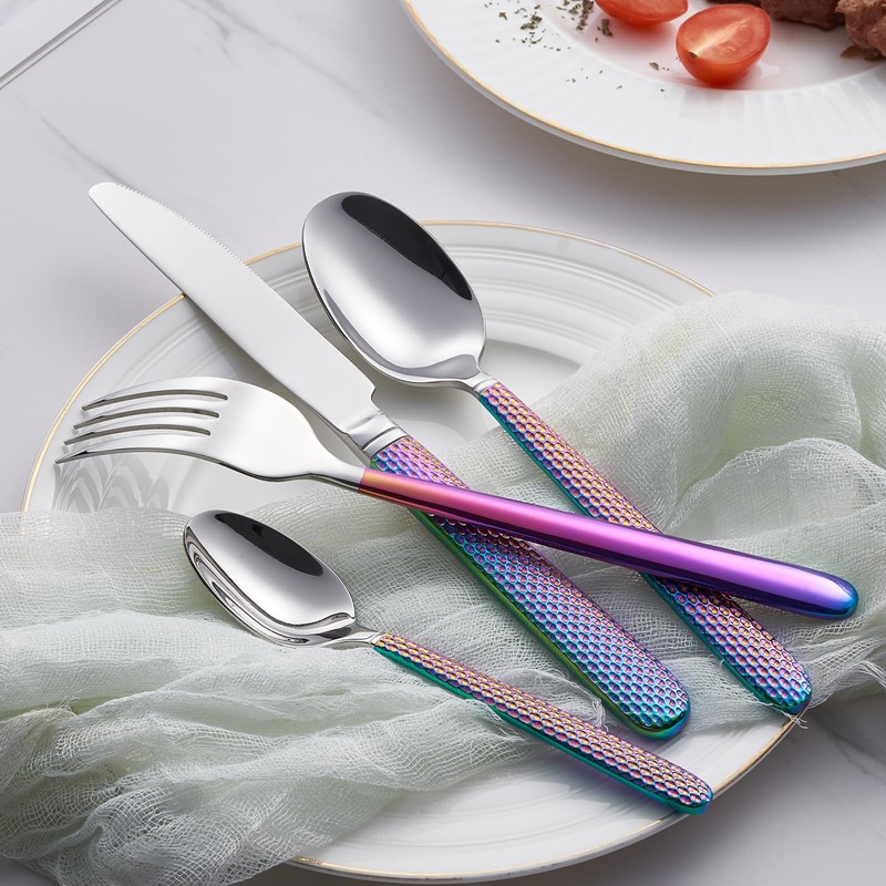 Onlycooker 16-Piece Rainbow Silverware Set,18/0 Stainless Steel Cutlery Set, Service for 4, Modern Silverware Set Includes Dinner Knives Forks Spoons, Mirror Polished, Dishwasher Safe