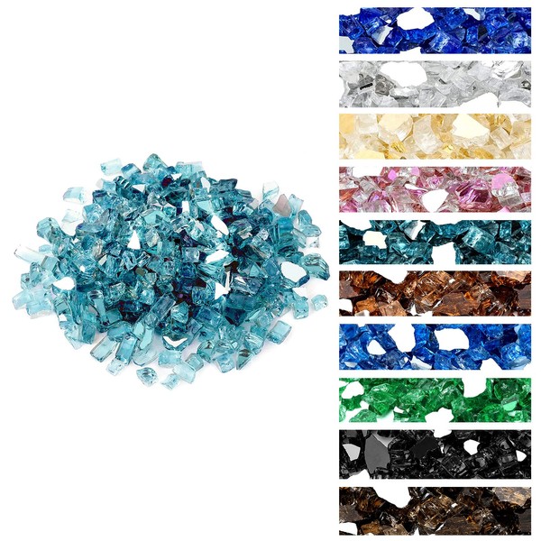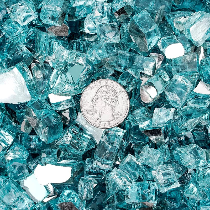 onlyfire 10 pounds Fire Glass for Propane Fire Pit and Gas Fireplace, 1/4 Inch Reflective Firepit Glass Rocks for Fire Pit Table and Fire Bowl, High Luster Aqua Blue