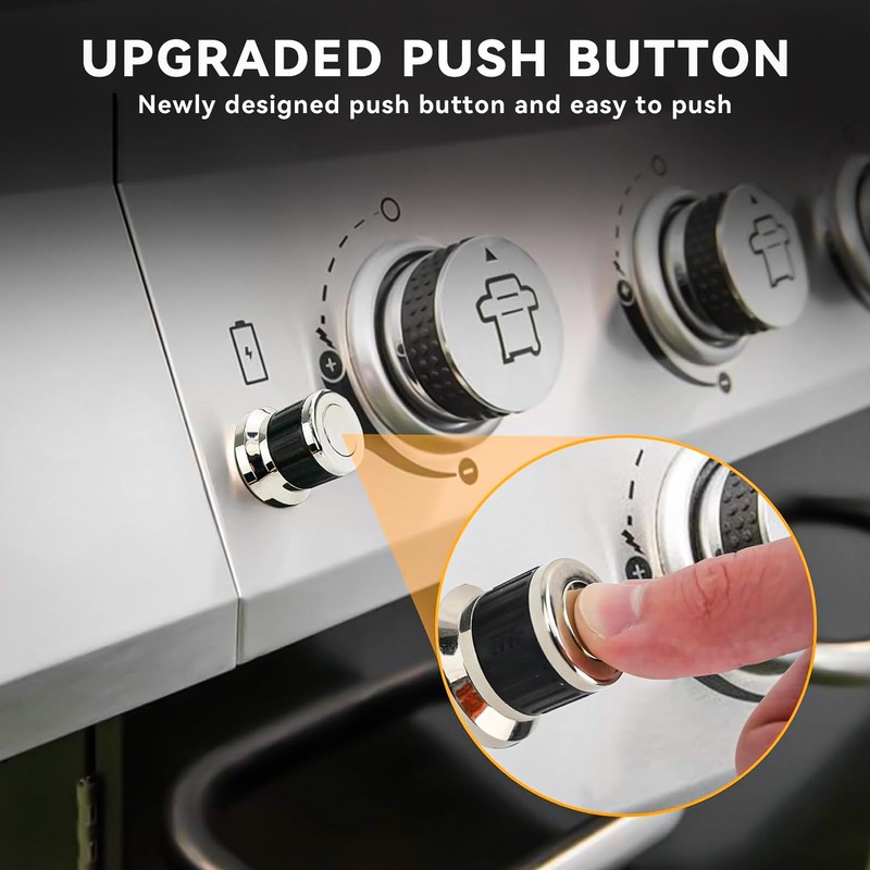 - NEW TACT PUSH BUTTON SWITCH IGNITOR DESIGN FOR GRILLS - chrome coated make your grill looks appropriate, work better, easy to install, 1.5 volt "AA" Battery required(Battery not include)