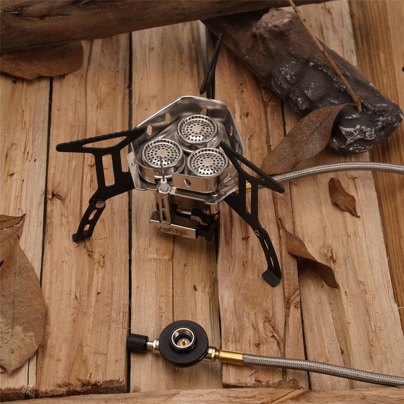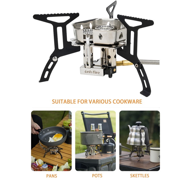 - STURDY AND STABLE COOKING PLATFORM: Constructed with thick-gauge stainless steel and copper triangle brackets, this propane backpacking stove ensures a stable and secure pot support. Serrated pot-support arms prevent unwanted pot shifts, maintaining a steady cooking experience.