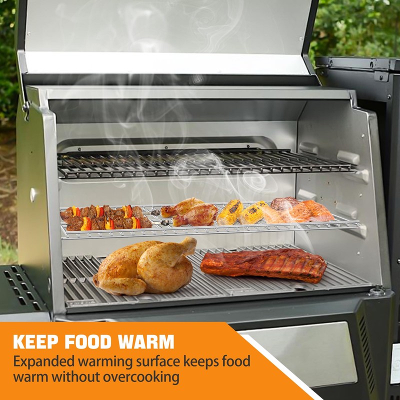 • Increased Cooking Space: Simply place the Grill Warming Racks in the grill for an additional 240 square inches of cooking space, perfect for those who need extra cooking space!